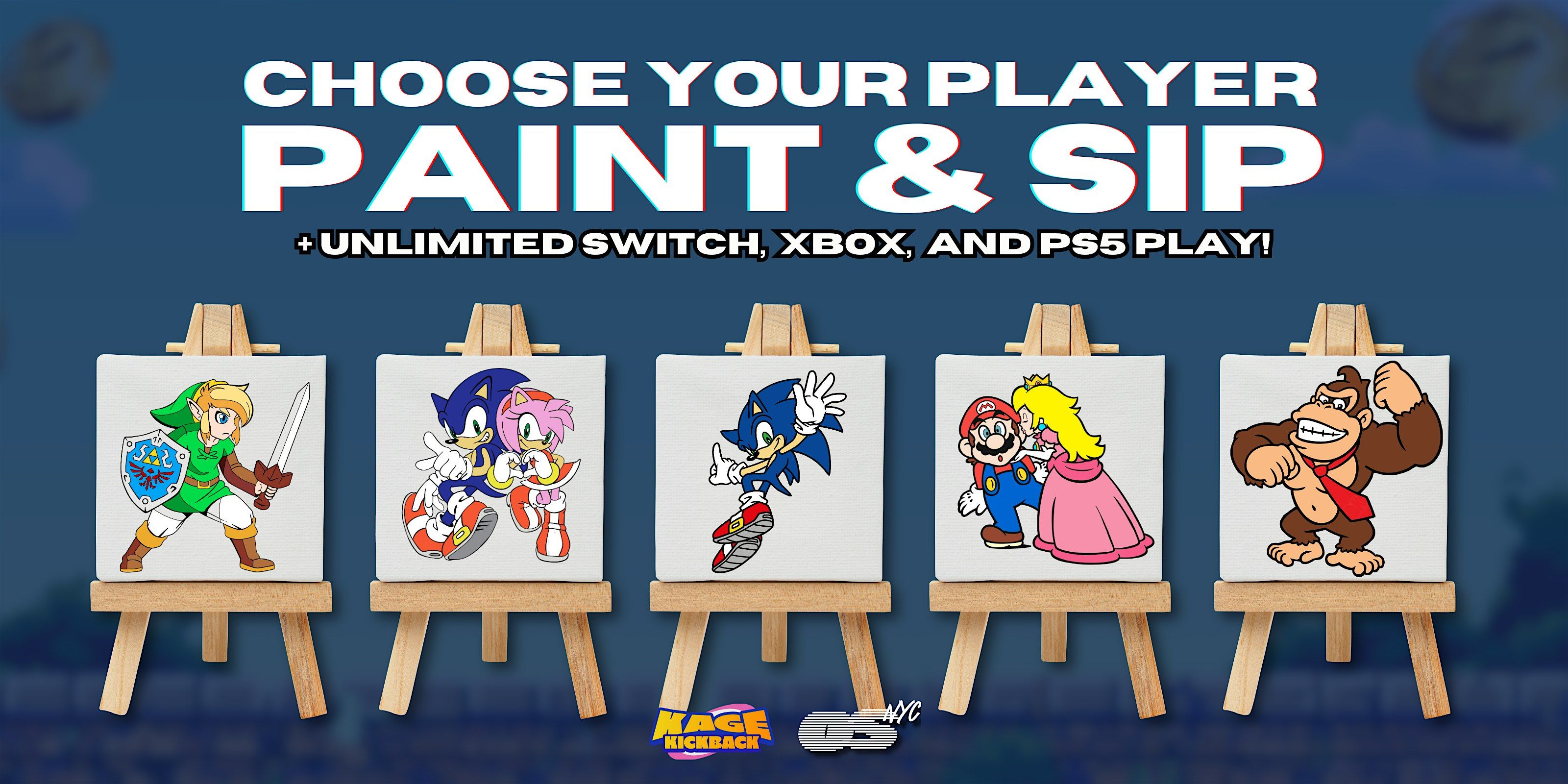 Paint your favorite gaming character! PLUS enjoy unlimited Switch, XBOX, and PS5 play. Perfect solo date or date idea for the gamer in your life!